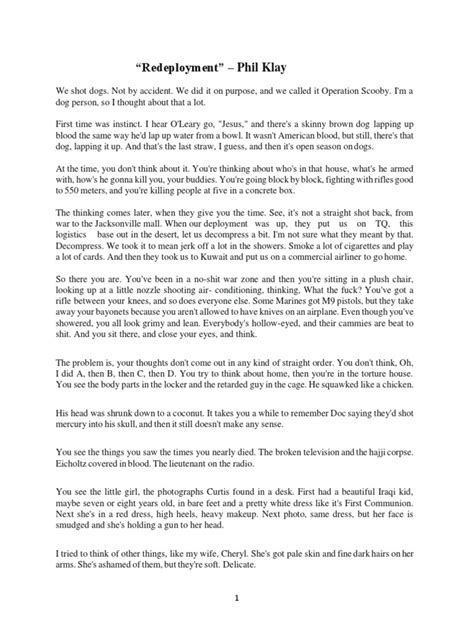 Read Online redeployment pdf by phil klay PDF online is a convenient and frugal way to read redeployment pdf by phil klay you love right from the comfort of your own home. Yes, there sites where you can get PDF "for free" but the ones listed below are clean from viruses and completely legal to use.